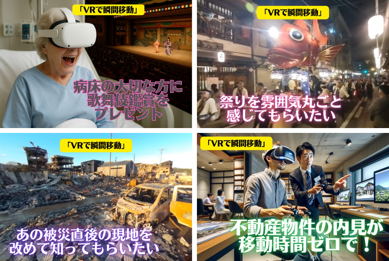 この仕組みにより、視界・音響・動きが連動した体験が可能となり、「その場に居る」感覚が増します。教育や体験学習の場では、アクセスが難しい現場(祭り・文化財・工場など)を教室に呼び込む手段として注目されています。